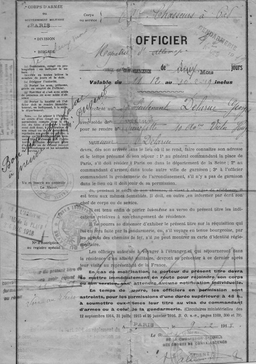 Le Lt Georges DELARUE fut porté disparu dans la nuit du 26 au 27 juin 1918 à Bures en Meurthe et Moselle lors d'une mission de reconnaissance pour laquelle il s'était porté volontaire.