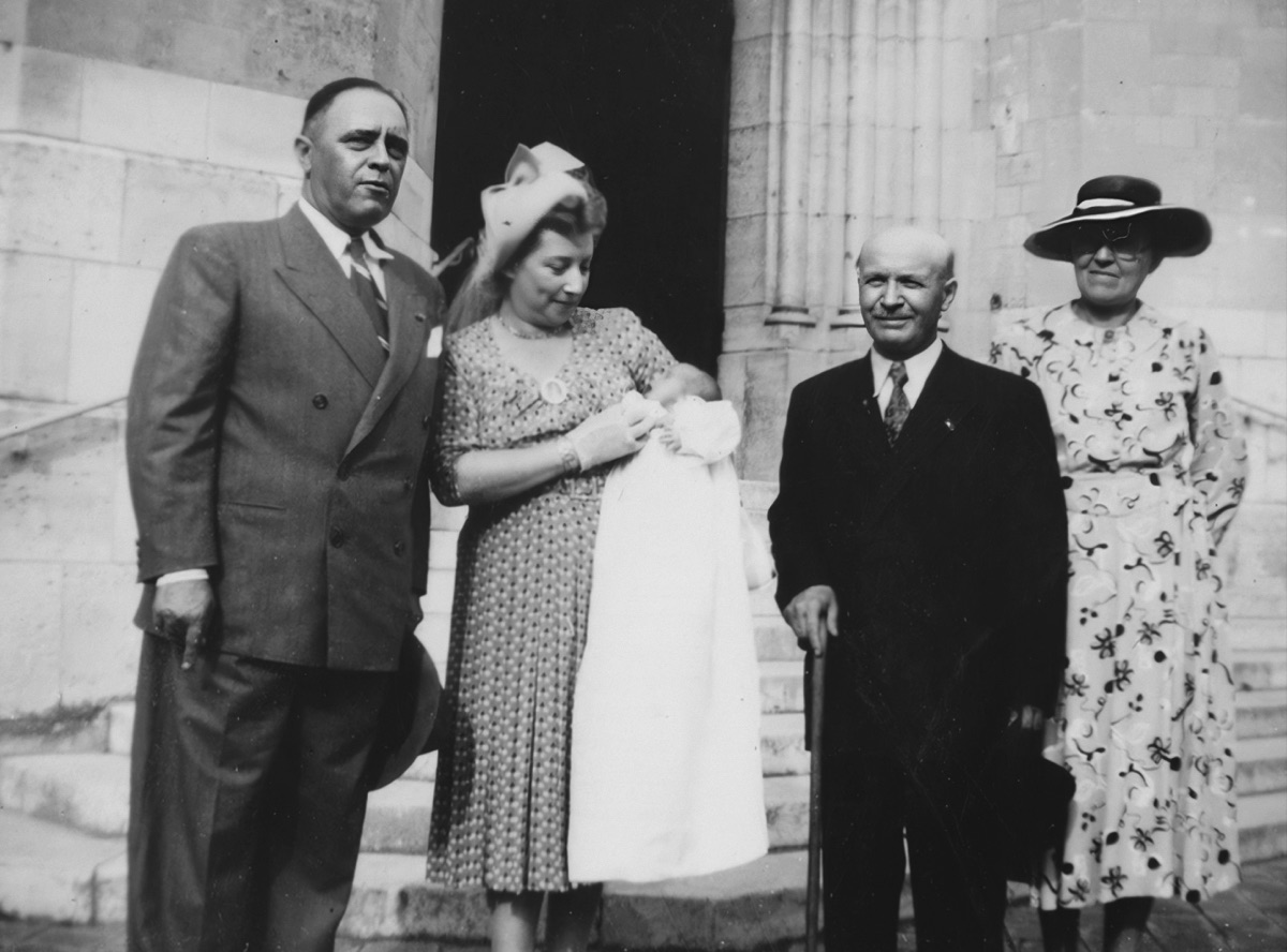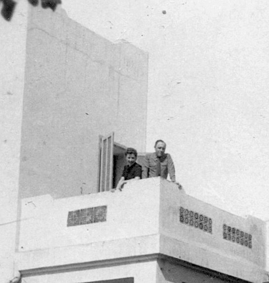 Rare photo, certes floue, de Georges souriant avec Pierre-Yves en 1949