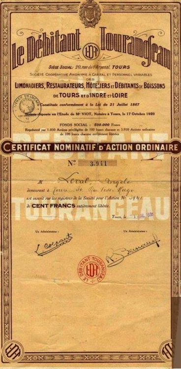 Il est ensuite appelé comme directeur pour la société "le débitant tourangeau"