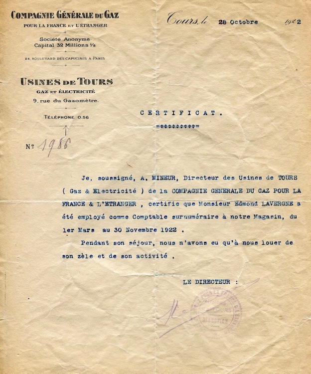 Edmond Emile Joseph Lavergne est né en 1900, une époque où la France subissait d'importants changements sociaux et politiques.