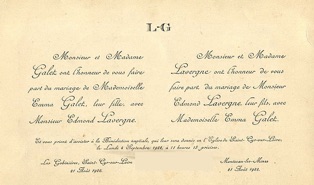 L'histoire familiale raconte qu'il connut sa jeune fiancée et cousine germaine, Emma GALET,