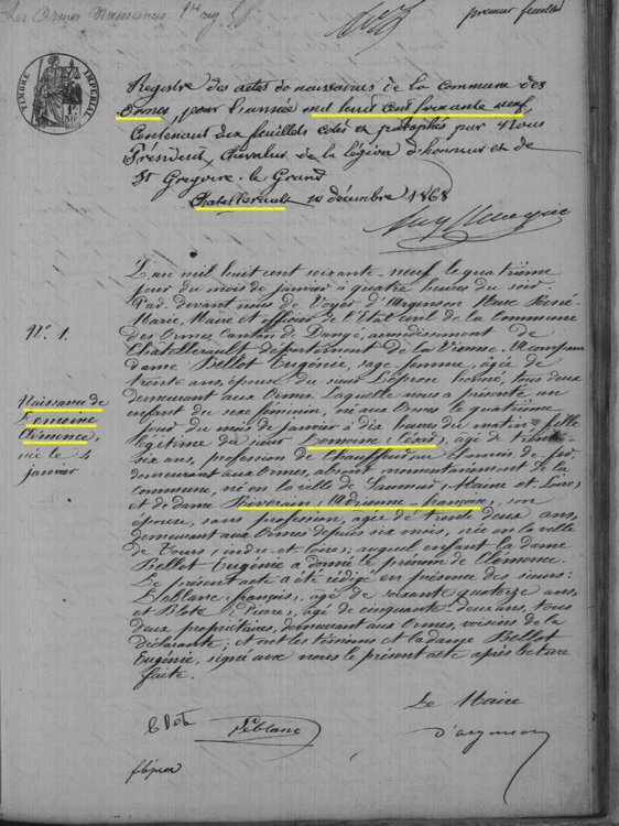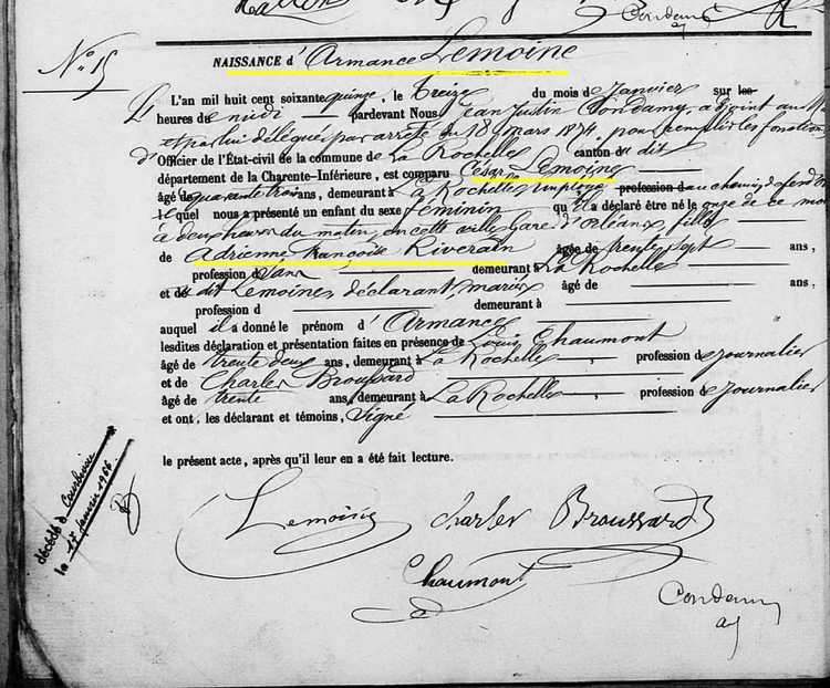 C'est Henri Lemoine, fils ainé du couple, qui déclarera le décès de Adrienne Françoise Riverain