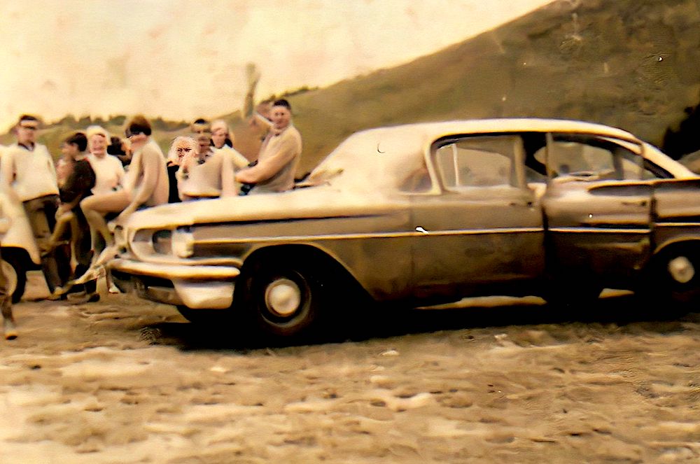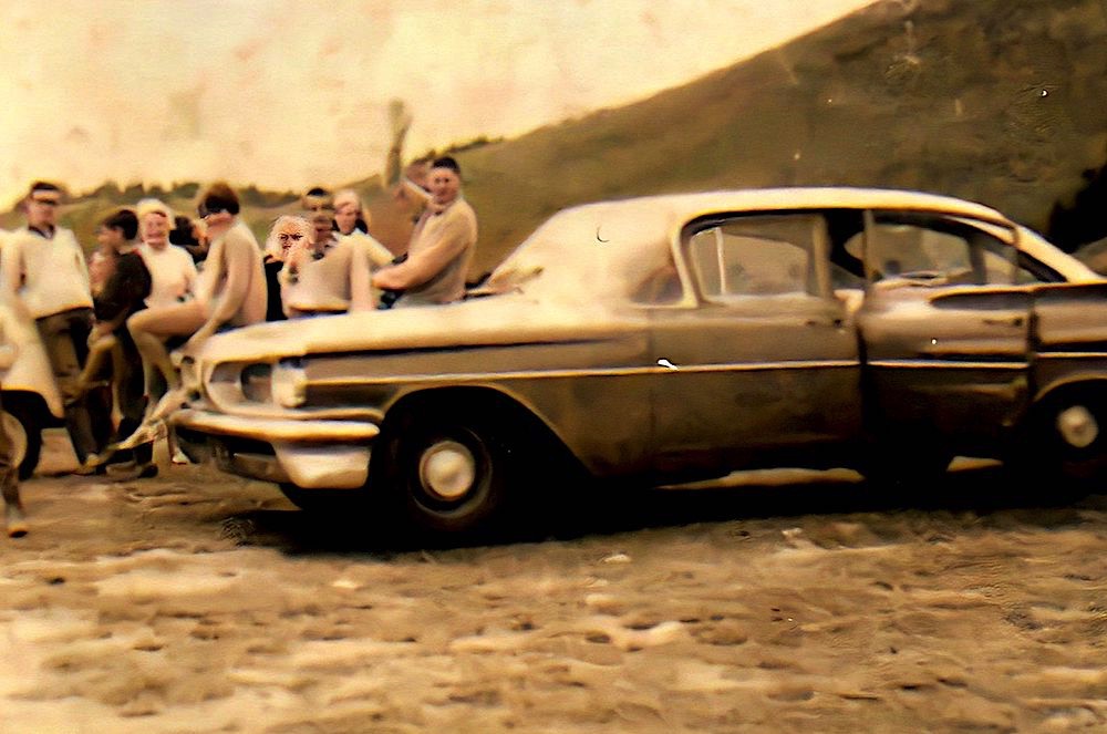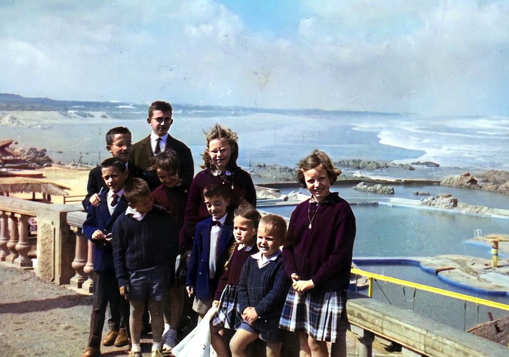 Pic du Midi - 1965 On reconnait : Pierre-Yves -Bruno - Totota - Florence sur capot - Christian - Véro - Jacques et la Pontiac
