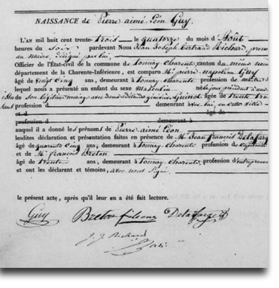 Acte de naissance de Pierre Aimé Léon GUY