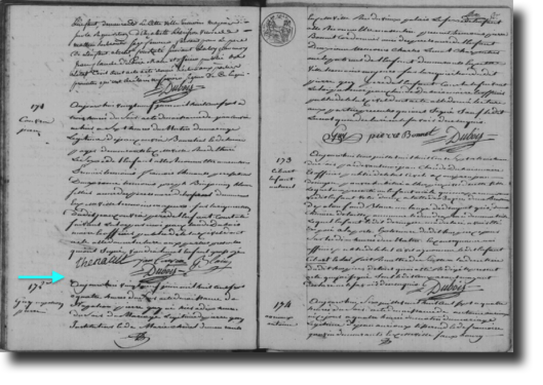 Il y a un seul document pour cet aïeul qui est l’acte de naissance du fils légitime de Pierre Guy, Instituteur, marié à Marie Chanel.